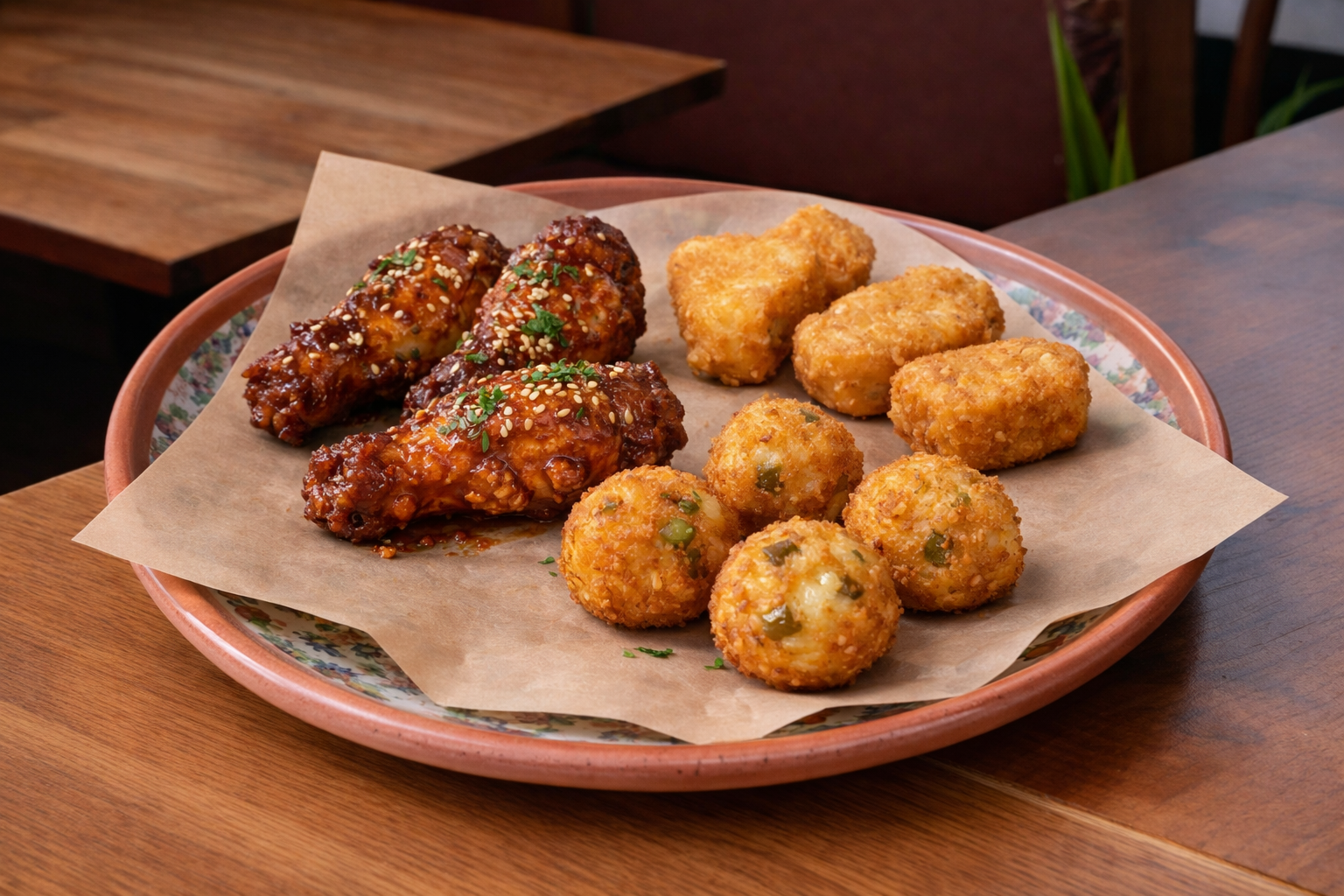 3 King wings, 3 nuggets, 3 chili cheese
